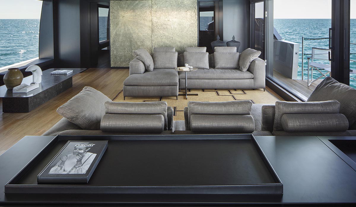 Esattamente. Infatti quasi mi dispiace quando sento magnificare lo ‘spazio in più’ consentito da questa impostazione. In realtà, il risultato ottenuto è molto più profondo e complesso. Se sali a bordo di una barca tradizionale e ti metti sull’asse di simmetria, guardando a destra e poi a sinistra hai un’esperienza sensoriale pressoché identica. Questo perché, a prescindere da tutti gli orpelli (arredi, decor eccetera), la tua distanza da quello che è il genius loci, il mare, è la stessa: sia da una parte sia dall’altra, tu guardi attraverso un vetro che sarà più o meno alto, poi vedi una falchetta, un’impavesata, un capodibanda e poi l’acqua.
