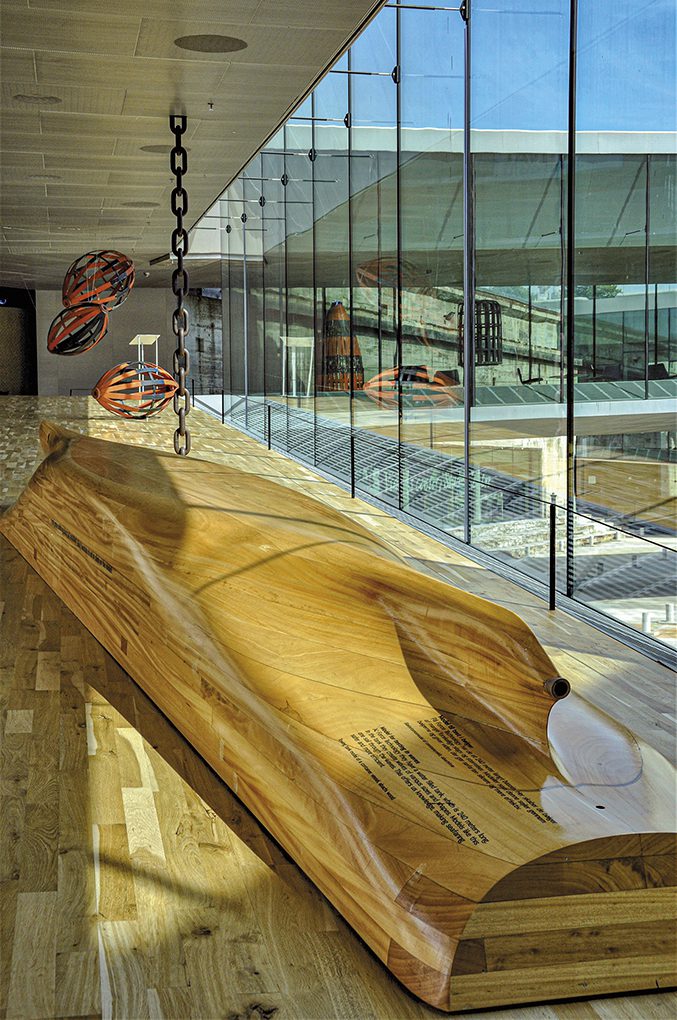 Gli spazi destinati alle esposizioni sono stati poi scavati sottoterra, tutto intorno al bacino di carenaggio, sul quale si aprono ampie vetrate. L’effetto di una tale planimetria suggerisce l’immagine di una ciambella col buco. Le esposizioni sono state create con criteri innovativi, limitando il numero degli oggetti a quelli di maggiore valore e previlegiando presentazioni comprensibili dal largo pubblico.