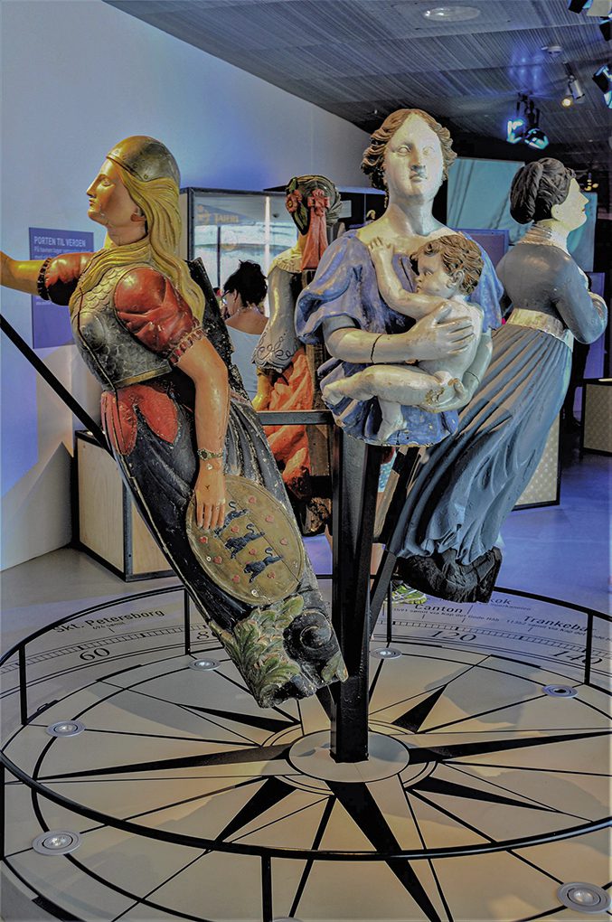 E così la sezione dedicata alla navigazione mercantile espone, come in tutti i musei marittimi, degli imponenti modelli di navi. Ma qui, sotto ogni scafo, sono collocati i campioni del carico: una montagna di valigie per il transatlantico; barilotti di burro danese per il mercantile; una massa di carbone per la nave porta rinfuse. Nella sezione che presenta l’economia del mare si dimostra poi quanto sia vantaggioso il trasporto marittimo: in termini di Dollari Usa, il costo dall’Asia all’Europa di una scatola di biscotti è 0,05 $; di una bottiglia di liquore 0,15 $; di un’aspirapolvere 1 $; di una TV 10 $.