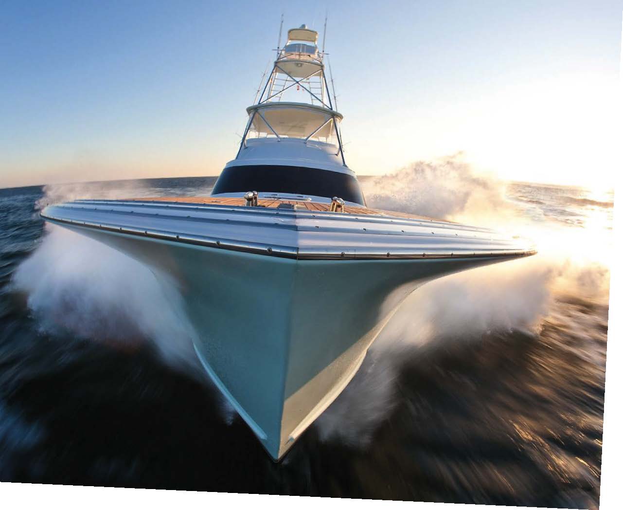 Anche per i grandi yacht, come il Pershing 140 della foto sotto, lo studio delle linee d’acqua per ottenere le massime performance con il minimo consumo, richiede lunghi studi e prove in acqua.