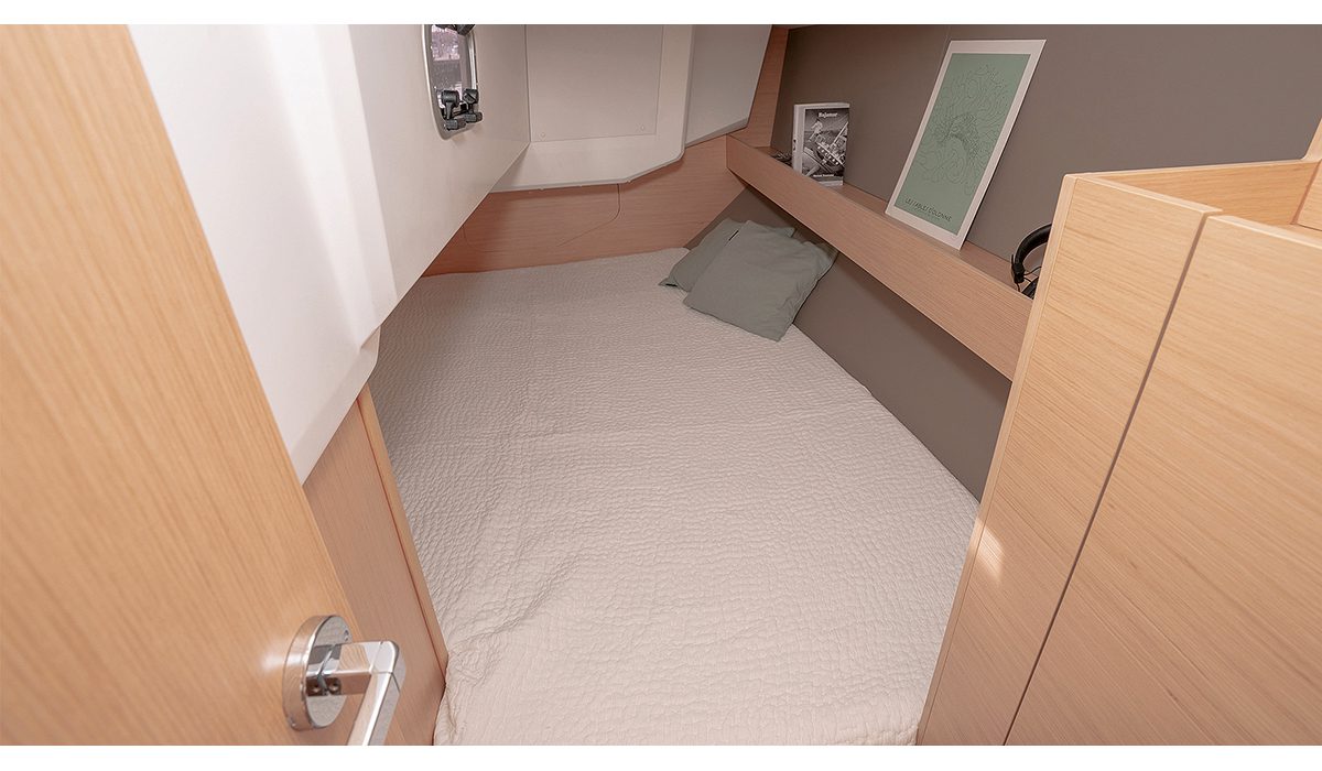 Cabina ospiti: spaziosa e con una discreta altezza grazie all’assenza del gavone in pozzetto sul lato di sinistra.