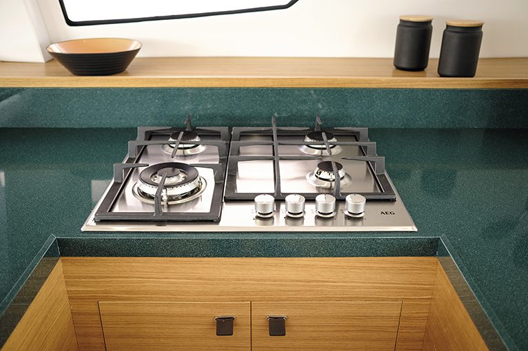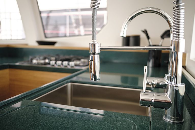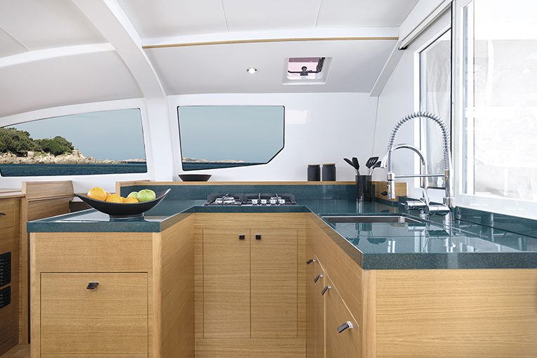 Il pozzetto rispecchia lo stile dell’imbarcazione, dove prima di pensare ai grandi “spazi catamaranici” si è pensato alla sicurezza e alla protezione necessarie nelle lunghe navigazioni, tanto che il pozzetto può essere ulteriormente protetto con dei trasparenti laterali, restando perfettamente isolato dalle intemperanze del mare.