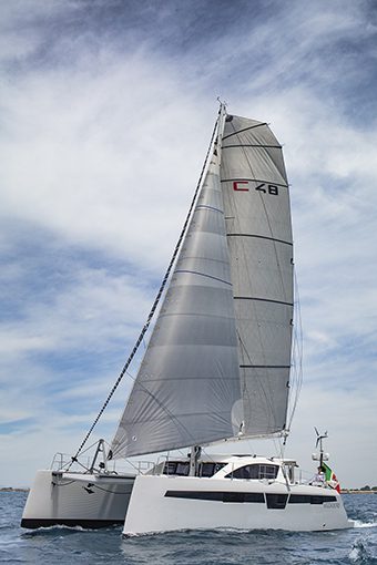 antaggi e svantaggi di un catamarano sono ben noti, ma la scelta di una barca come il C-48 denota idee ben precise sulle proprie ambizioni di navigazione: non parliamo infatti di un cat tradizionale, apprezzato in genere per la sua abitabilità e per i grandi spazi ludici, ma di un catamarano progettato per la lunga crociera, eventualmente anche oceanica, in grado quindi di offrire la robustezza necessaria per affrontare senza problemi il mare anche in condizioni negative, e prestazioni di alto livello sia sotto venti tesi sia con le leggere brezze mediterranee.