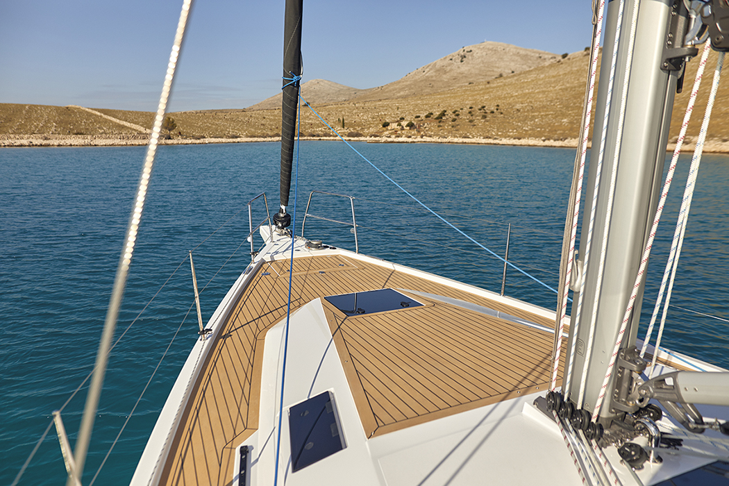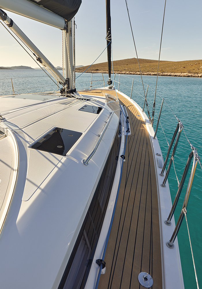 L’estetica funzionale impressa dal celebre studio italiano ha giocato un ruolo fondamentale, poiché la volontà di ottenere grandi volumi spingendo sul baglio e soprattutto sull’altezza, avrebbe potuto incidere negativamente sulla fluidità delle linee. E, invece, ecco la sorpresa: si sale a bordo di uno sloop finemente slanciato e, affacciandosi dal tambuccio verso l’interno, si spalanca la bocca nel classico “wow”.