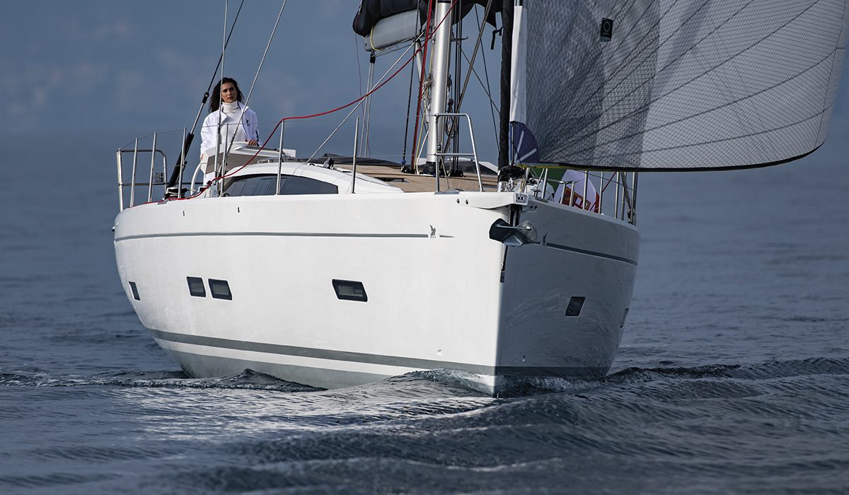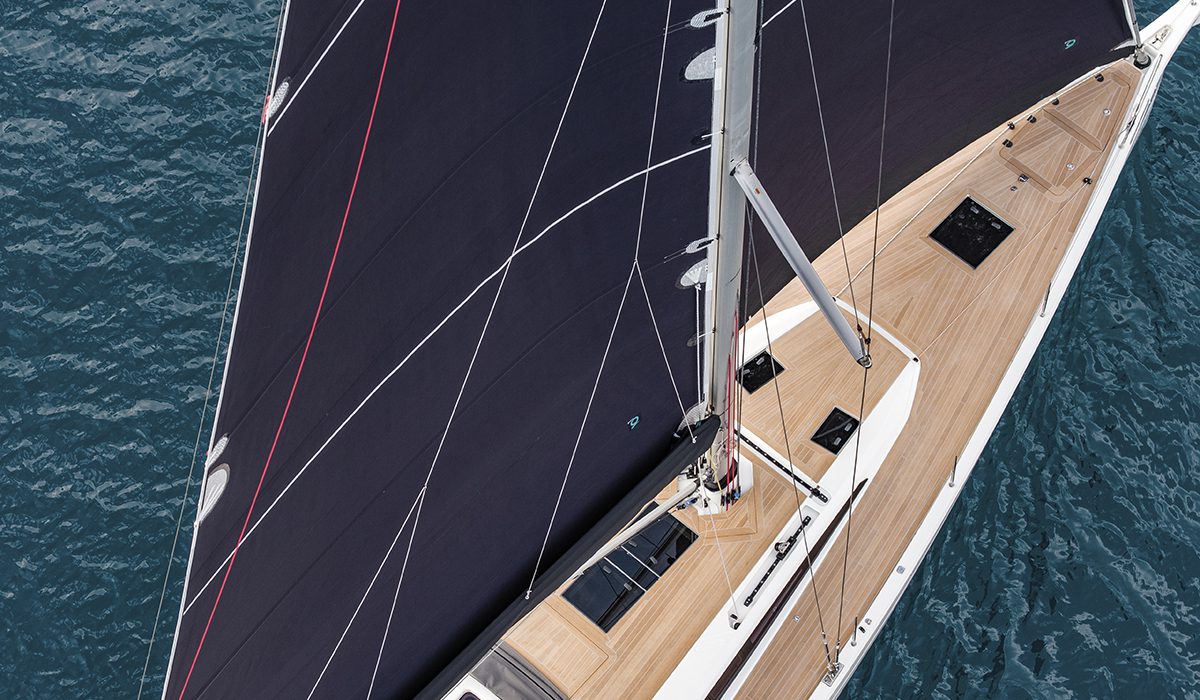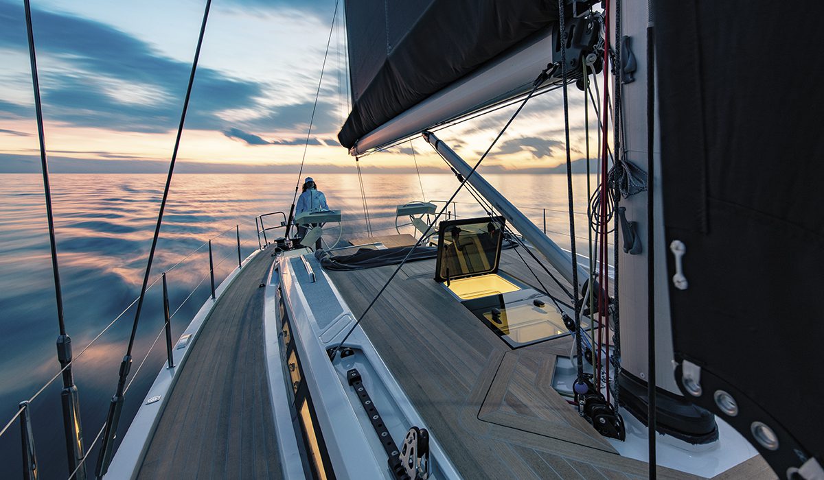 E che l’armatore propenda per lunghe navigazioni piuttosto che cimentarsi fra le boe, lo si capisce anche dal bellissimo teak con cui è rivestito tutto il ponte. Ma in pozzetto, anche con l’assetto croceristico, non è difficile immaginare un equipaggio impegnato in una competizione grazie al grande spazio in cui muoversi. I winch, due per lato, con quelli più a poppa elettrici, sono collocati in posizione molto prossima alle ruote, in modo tale che il timoniere stesso possa lavorare alla scotta della randa, organizzata con un circuito alla tedesca, quindi sdoppiato sui due bordi, e sulla regolazione della scotta della vela di prua. Lo abbiamo provato e riprovato nel corso delle nostre 54 ore di navigazione: qualsiasi manovra, dall’issata alle virate, soprattutto con il fiocco autovirante, può essere effettuata senza nessuna difficoltà da una sola persona.