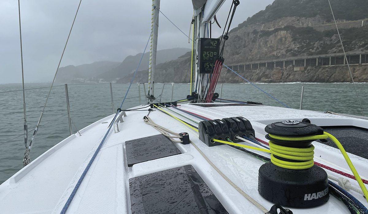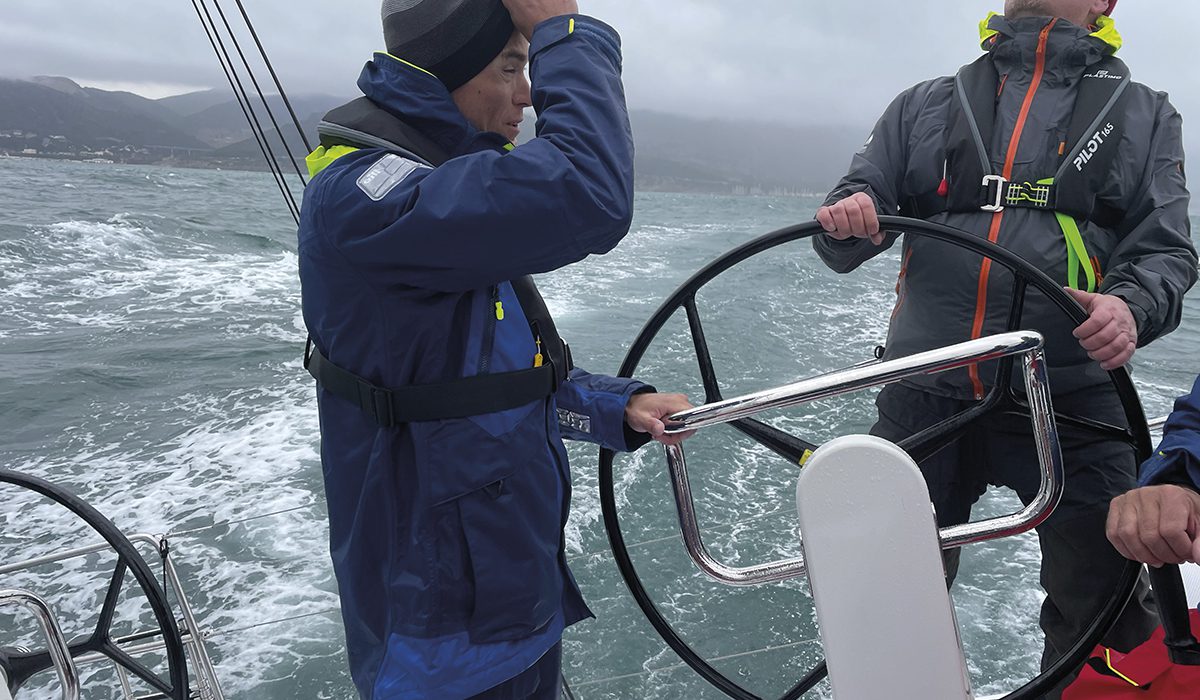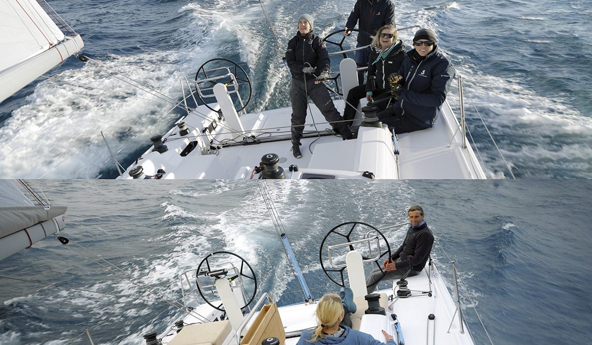 Ed eccoci a bordo, a Port Ginesta in Spagna, per verificare tutto ciò in una giornata che certamente non è l’ideale per una famigliola in gita – vento a 20-24 nodi, onda fino a 3 metri – ma che sicuramente ci permette di apprezzare la “marinità” della barca e il suo allestimento tecnico. Siamo in quattro e la prima cosa che apprezziamo, appena in mare, è la perfetta organizzazione delle manovre. In pratica, si governa tranquillamente anche in due, tenuto conto del fatto che i rinvii consentono al timoniere di agire su diversi fronti.