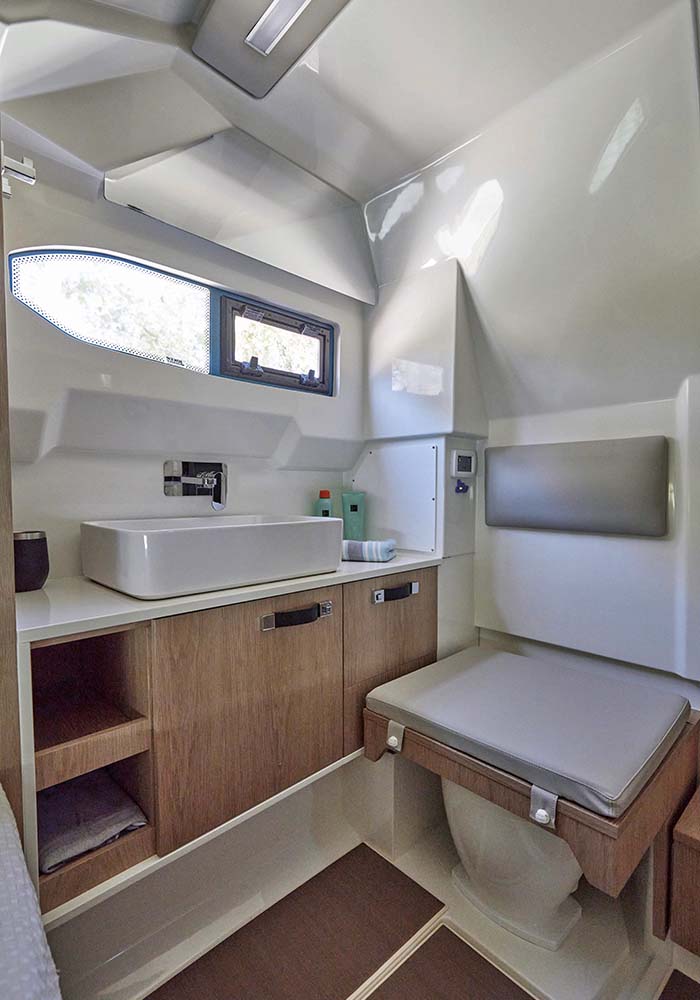 La regolazione automatica dei trim ha fatto egregiamente il suo lavoro impostando con immediatezza la corretta inclinazione dei motori. In modalità manuale la navigazione è diventata più divertente, permettendoci di giocare alla ricerca della massima efficienza, trimmando in positivo per prendere più giri e ridurre la superficie bagnata dopo un ingresso in planata a circa 11 nodi.