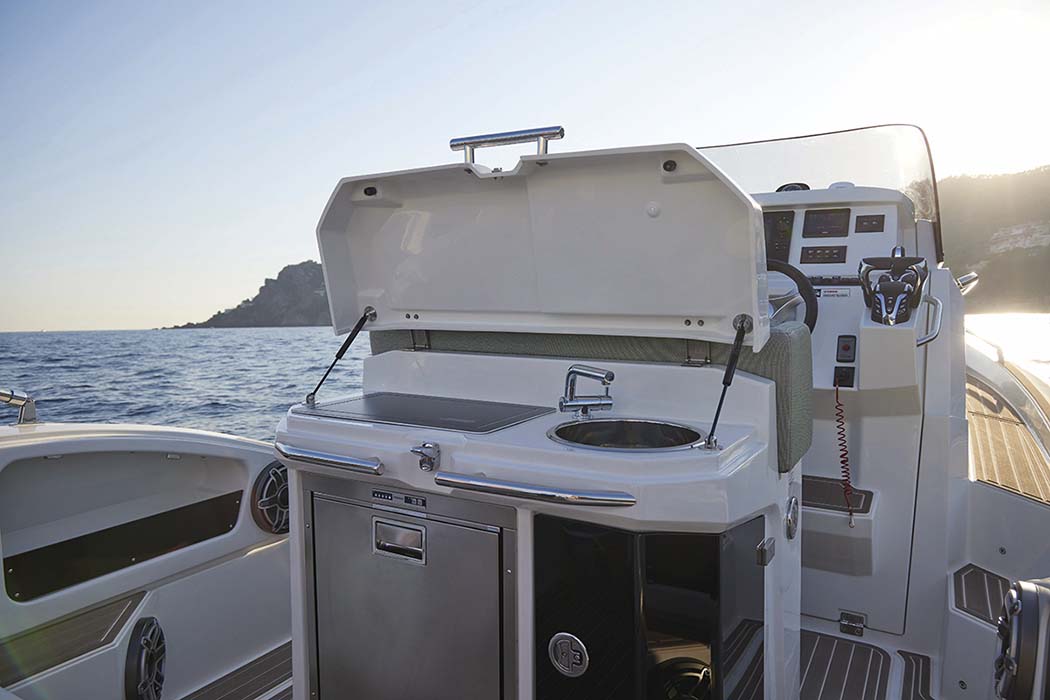 Un rib cabinato che, riprendendo le linee del 30 piedi, propone tante nuove soluzioni. Una carena completamente ridisegnata e interni sorprendentemente spaziosi.