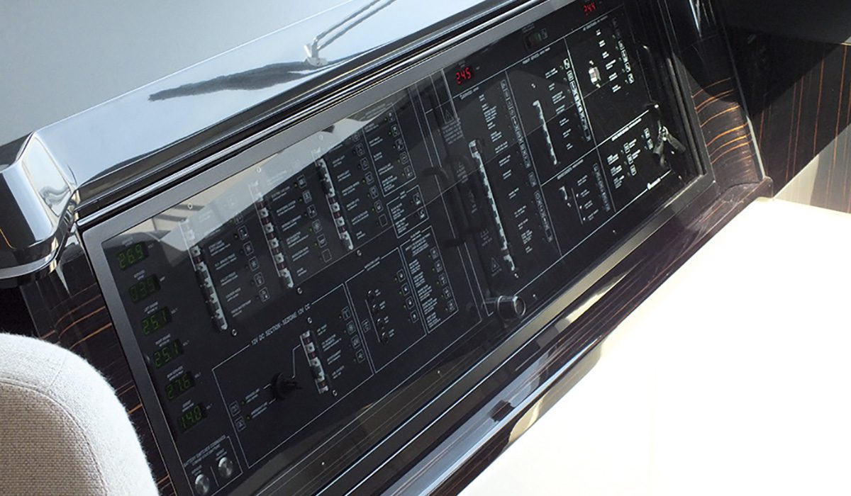 | Principali dotazioni standard | 2 touch screen Volvo Penta 7’ EVC, 2 joystick di manovra, generatore Onan da 21,5 kW, sistema antincendio, antenna per segnali tv, TV a scomparsa nel salone, autopilota, Vhf con DSC |