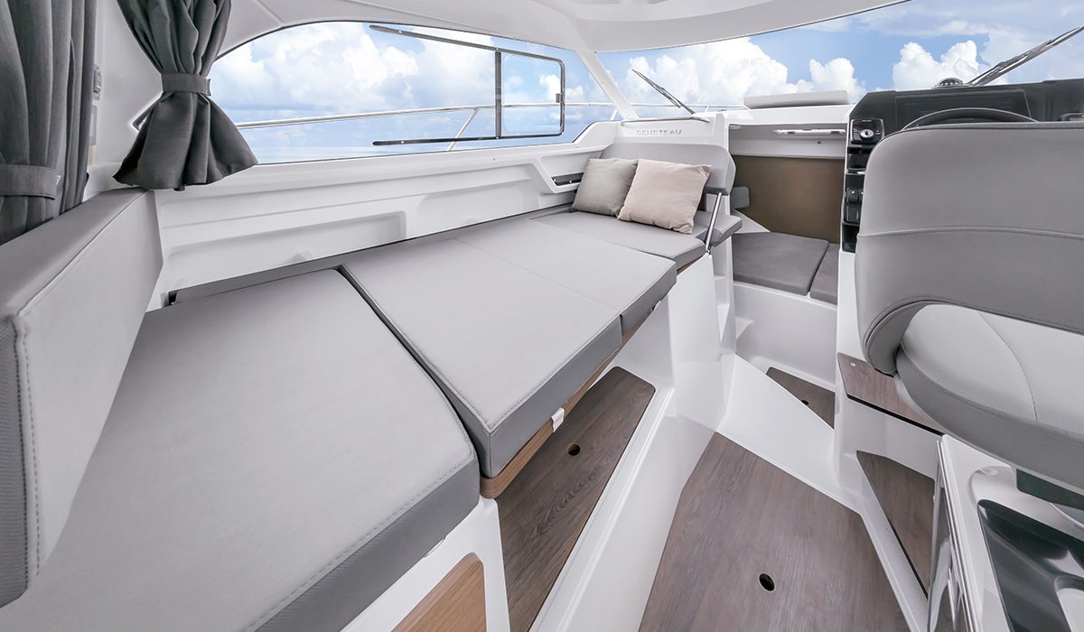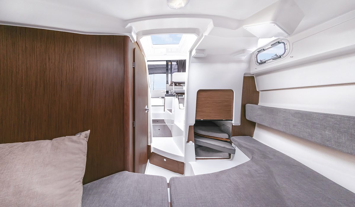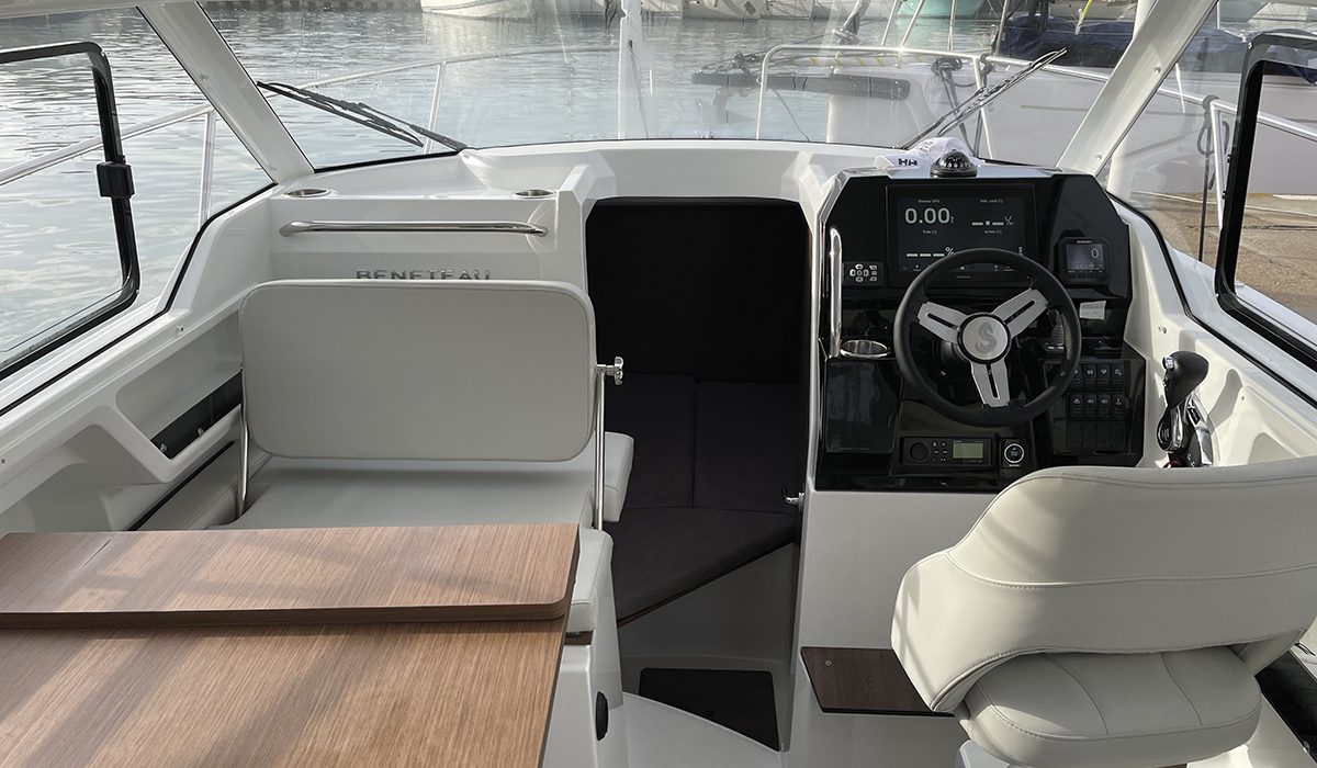 Proprio non poteva mancare la versione V2 fishing dell’Antares 8, uno dei più classici weekender di casa Beneteau. Rispetto alla versione Cruising è stato modificato soprattutto il pozzetto, in considerazione del fatto che su una barca dedicata alla pesca – soprattutto se di dimensioni contenute – lo spazio non è mai abbastanza. Ma non si tratta soltanto di volumi: in questo modello si evidenzia subito la grande attenzione che è stata dedicata alla transitabilità in tutte le direzioni e all’adattabilità dell’allestimento.