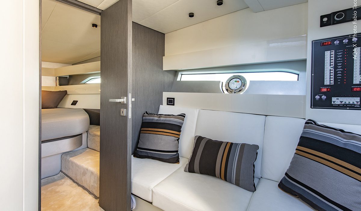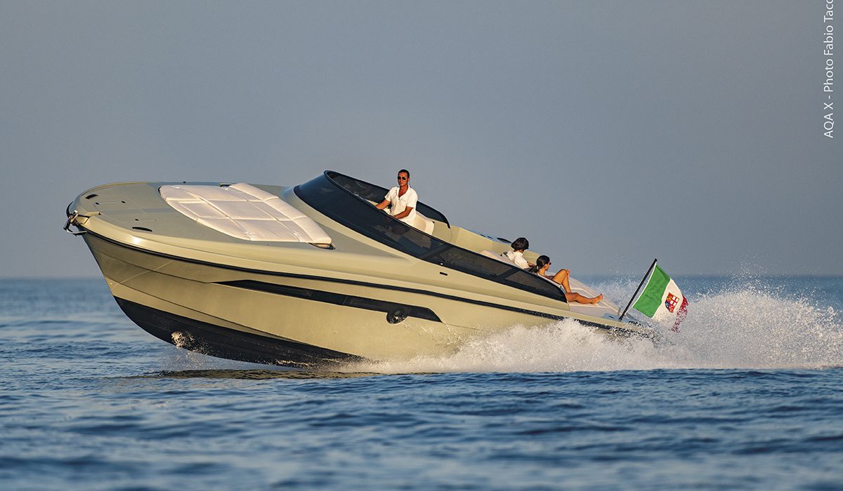 Chi siede ai comandi di queste barche non sogna le lunghe avventure atlantiche. Piuttosto preferisce improvvisare rapide traversate per raggiungere nel più breve tempo possibile i luoghi migliori per trascorrere un’intera giornata di mare e – perché no? – magari decidere di passarvi la notte. E se il tempo dovesse guastarsi, pazienza: la carena permette di tornare altrettanto rapidamente in piena sicurezza. A questa premessa, che fin qui può apparire generica, basta aggiungere il nome – Aqa 38 X – e il ritratto è bello che fatto. Stiamo parlando di un natante offshore che, nell’arco dei quattro esemplari fino ad oggi costruiti, ha raggiunto una maturità che è facilmente riscontrabile in quei dettagli che sono frutto dell’utilizzo. Per esempio, parlando di esterni: il pagliolato in piano che, grazie alla studiata ampiezza dei passaggi, permette un transito sicuro anche a chi ha problemi di deambulazione (chi non ne ha, durante la navigazione?).