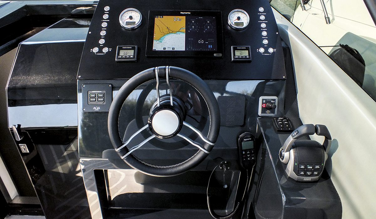 Nessun accenno a quei salti d’assetto che sono tipici delle carene piatte. In questo modo, quasi senza rendersene conto, si scopre dallo strumento che si sta viaggiando a oltre 36 nodi in perfetto assetto. Infruttuosi i tentativi di mettere in crisi lo scafo agendo energicamente sul timone elettrico e sulle manette: la carena corre sui binari anche nelle accostate più strette e improvvise.