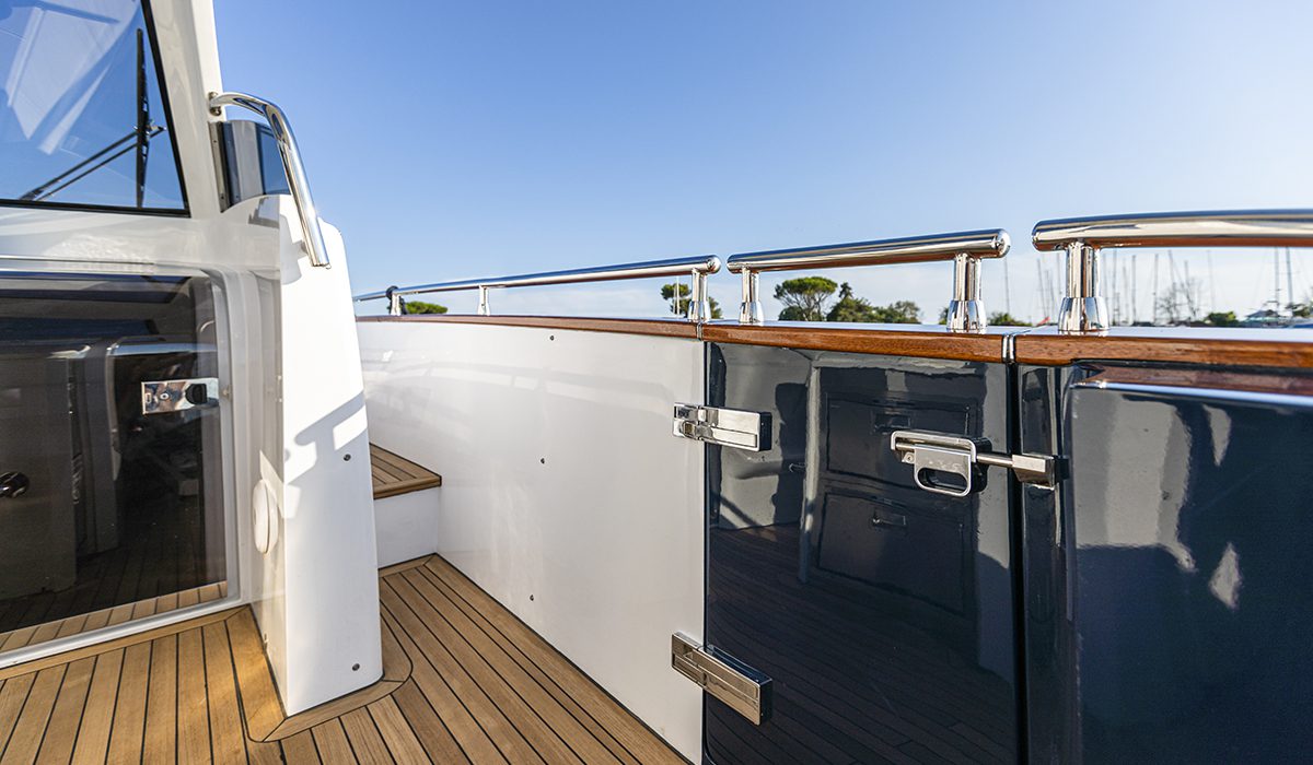 Da notare, fra le varie chicche, anche la stazione d’ancoraggio a prua, dove il verricello principale per catena e ancora è affiancato da un secondo verricello di “servizio” che, in determinate circostanze, può rivelarsi addirittua provvidenziale.
