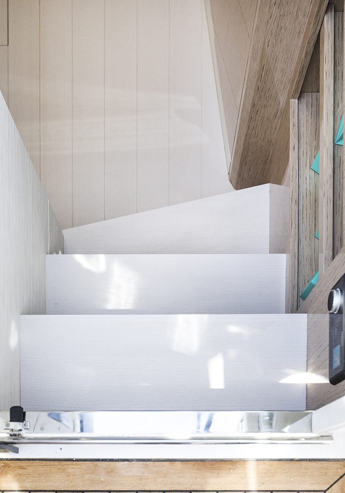 Trattamento antisdrucciolo: tutti i piani di calpestio sono rivestiti in teak.
