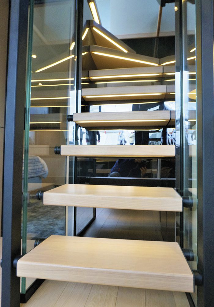 A fianco della timoneria, la scala porta alla cabina VIP del ponte inferiore, anch’essa quindi dotata di assoluta privacy.