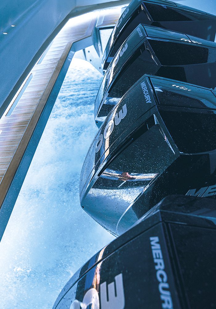 Per quanto riguarda la motorizzazione, per la quale è confermata la partnership con Mercury, il D50 è predisposto ad accogliere due, tre o quattro fuoribordo, permettendo ad ogni armatore di scegliere la potenza ideale per l’uso che desidera fare della barca.