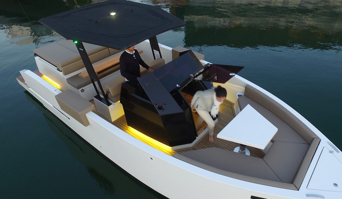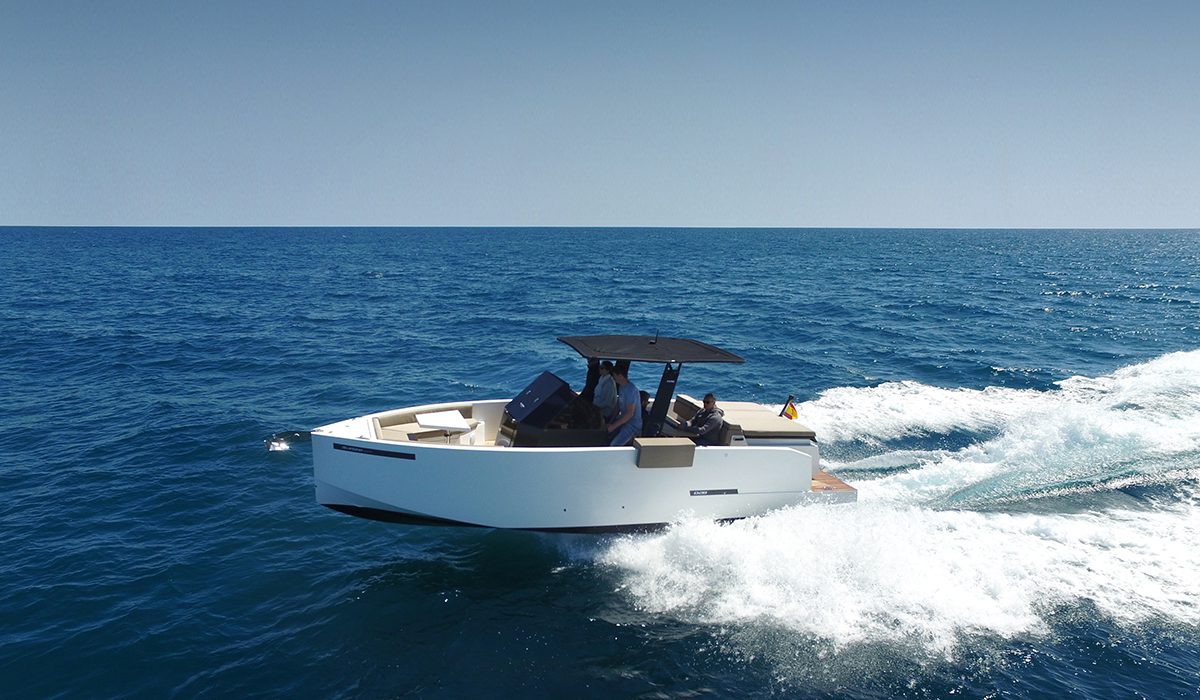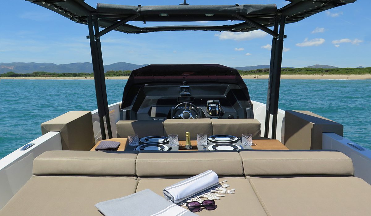 Un day cruiser dallo stile innovativo che cela, sotto la plancetta di poppa, due fuoribordo capaci di imprimere potenza e velocità. Tanta attenzione ai dettagli e un’ottima organizzazione degli spazi, sono i tratti distintivi di una piccola-grande barca.