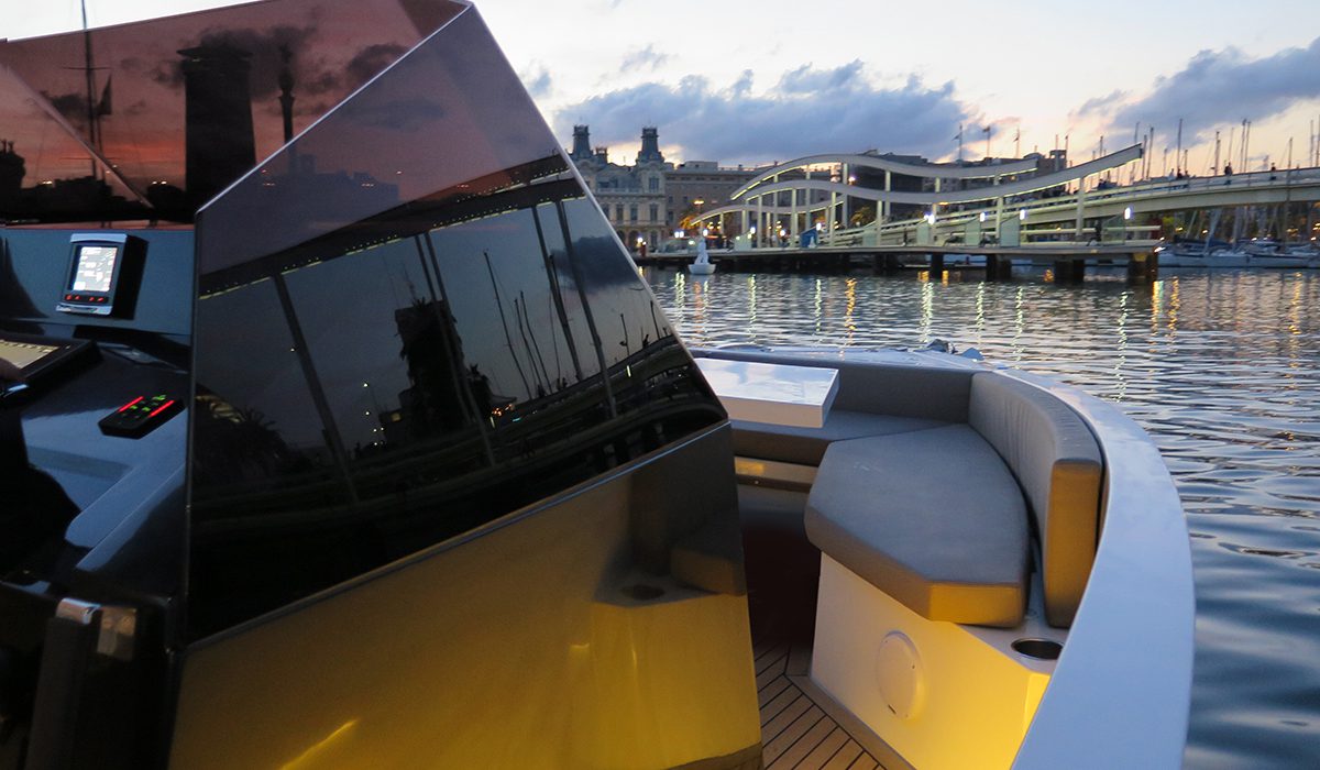 Abbiamo quindi raggiunto Barcellona per testare l’entry level D28 Open. Saliamo a bordo passando attraverso la plancetta di poppa – profonda quasi mezzo metro – e verifichiamo che realmente l’accesso risulta molto comodo e sicuro nonostante la presenza di due fuoribordo occultati proprio sotto di essa, restando all’occorrenza comunque perfettamente accessibili sollevando il grande prendisole di poppa a tre posti.