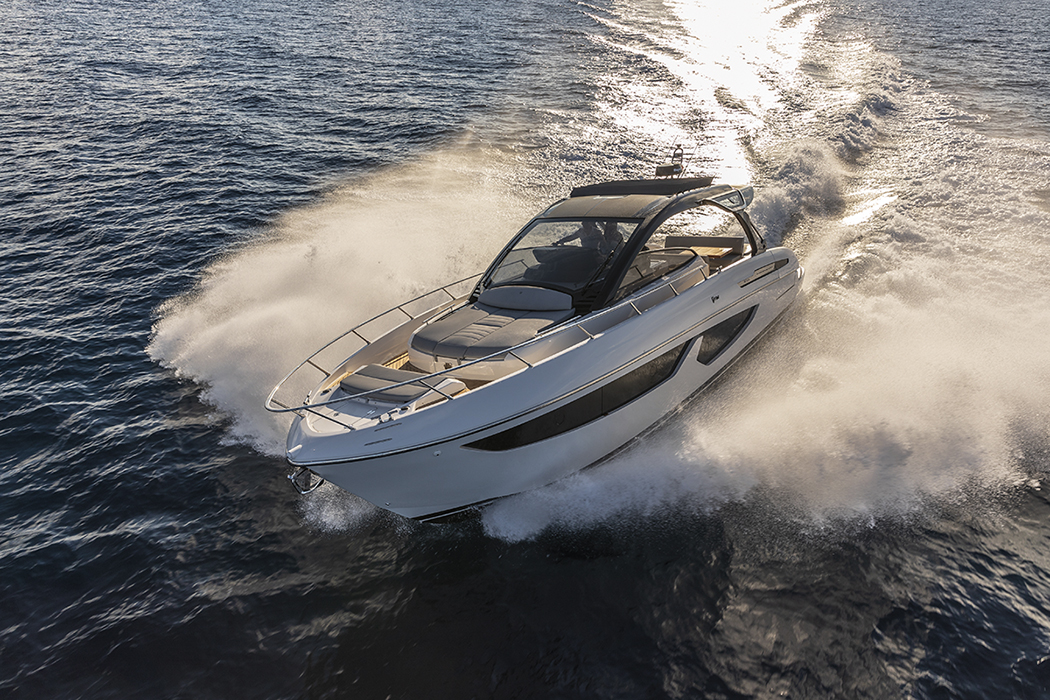 La barca mette in evidenza caratteristiche di fascia alta, a partire dall’hard top realizzato in fibra di carbonio – anche per abbassare il baricentro – con pannello sottostante in eco-carbon, una fibra riciclata proveniente dal settore aeronautico ottenuta dalla tecnologia sviluppata dalla Recarbon in collaborazione con CBS.