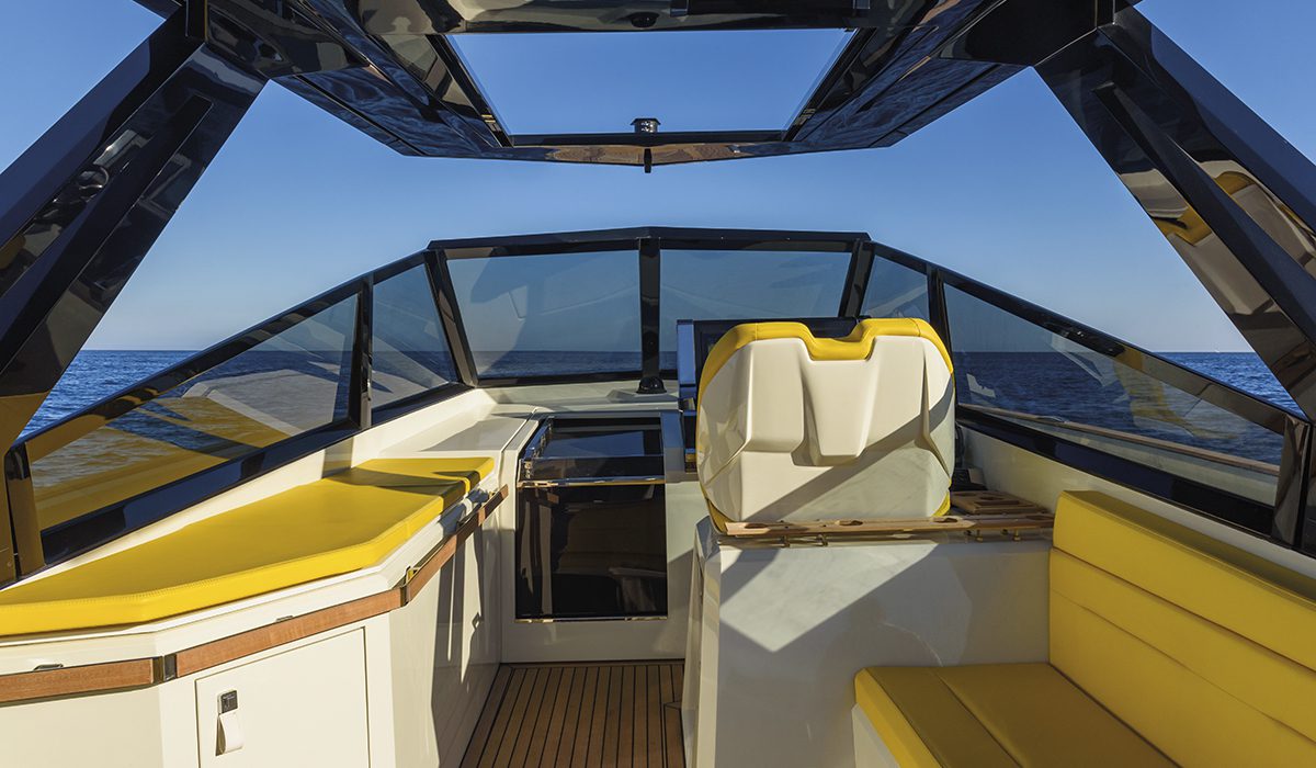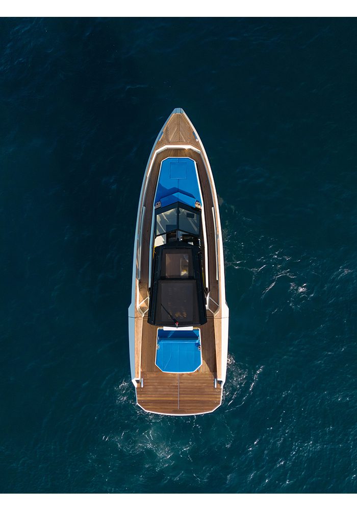 Per quanto riguarda la propulsione, due motori Volvo Penta IPS 650 da 535 HP, per una velocità massima di 38 nodi e un’autonomia di circa 300 miglia.