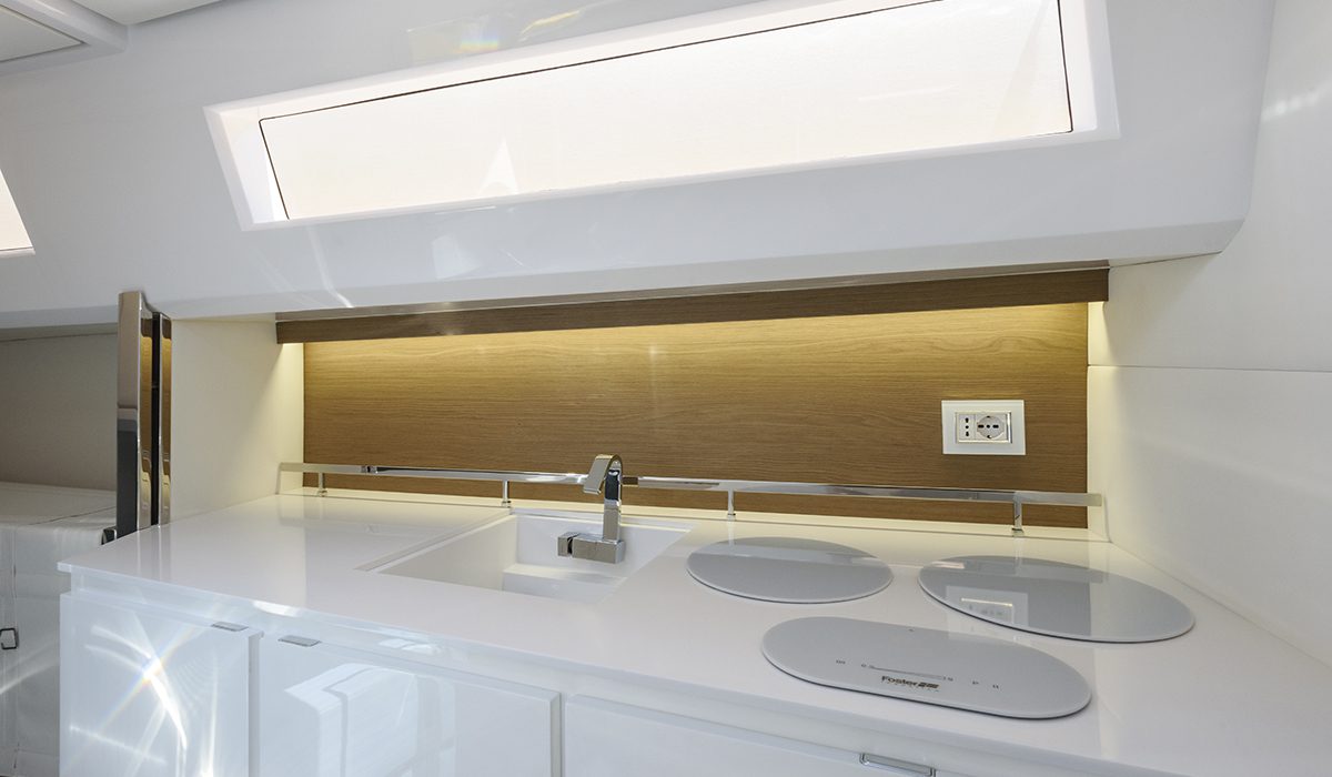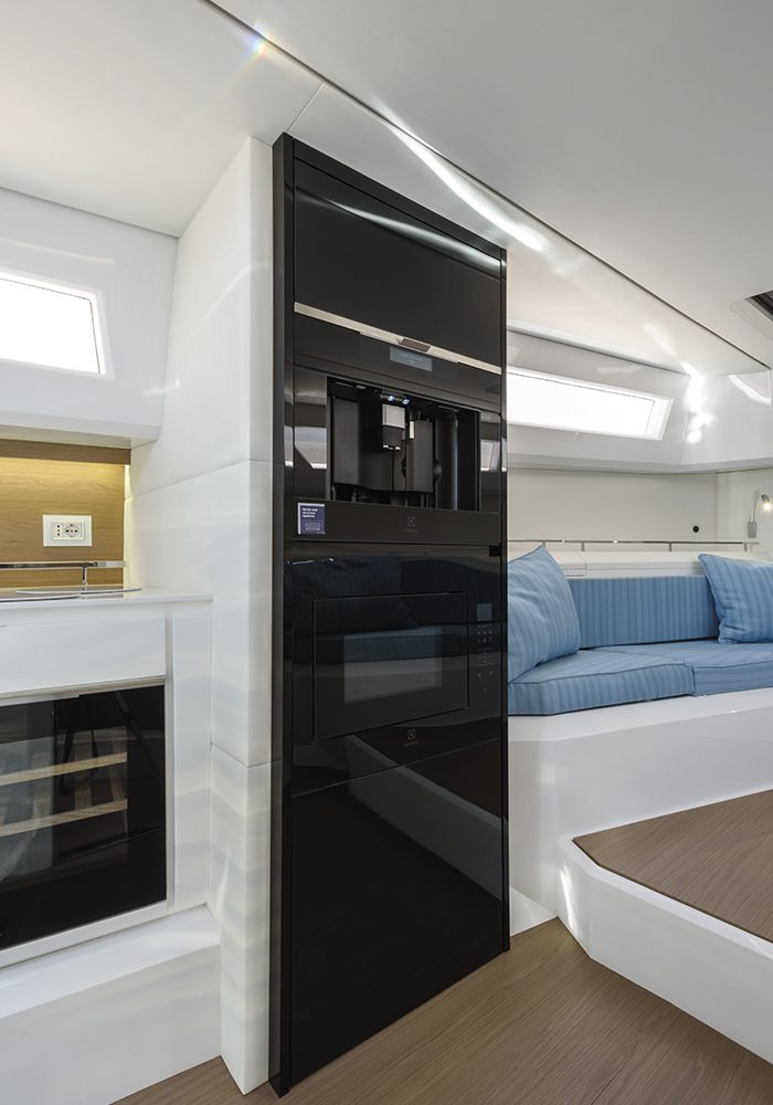 E se la disposizione degli interni ricalca un’impostazione classica, con una cabina doppia armatoriale e una zona dining trasformabile in una zona notte aggiuntiva, interviene la possibilità di trasformarli in poche mosse per dar loro un tocco di originalità, ferme restando le ampie possibilità di personalizzazione.