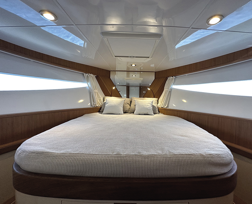 L’organizzazione della zona notte prevede una sola cabina armatoriale a prua nella versione Deluxe, mentre per la versione Family è disponibile una seconda cabina a poppa.