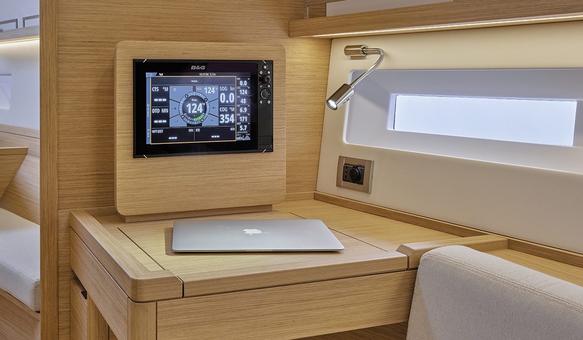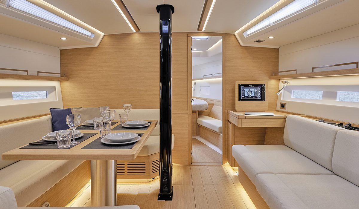 In entrambe le versioni ci troviamo di fronte a una barca con poca superficie bagnata e slanci che fanno aumentare la lunghezza al galleggiamento man mano che aumenta lo sbandamento. Linee decisamente sportive ma che non sacrificano i volumi interni. Anche il piano velico è potente per entrambe le versioni, grazie all’arretramento dell’albero che permette di avere più superficie velica a prua anche nel caso in cui si vogliano semplificare le manovre scegliendo un fiocco autovirante. Infine, per entrambi i modelli, anche la pulizia della coperta e l’ergonomia del pozzetto.