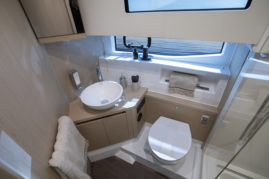 Ci siamo trovati di fronte a una carena piuttosto bagnata, anche in planata oltre la mezza nave, che ha comportato una buona reattività ma certo non da barca sportiva, con una decisa progressione negli incrementi di velocità tipica di una barca da crociera. Ottima la governabilità all’ormeggio, facilitata dal joystick ormai onnipresente anche su barche di piccole dimensioni.