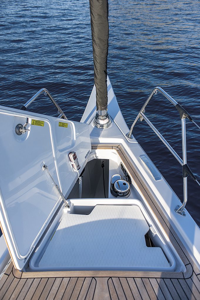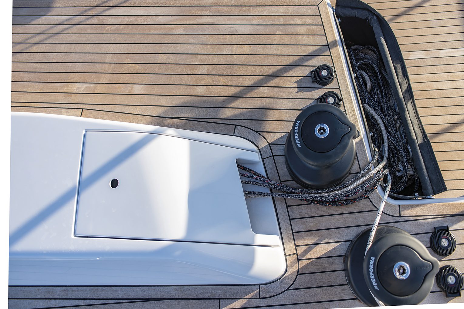- Verricelli: quattro nella versione Performance e sei in quella Race. Con il paterazzo sdoppiato, se ne aggiungono due per la sua regolazione e diventano otto. Nella versione Race è previsto un pistone idraulico a prua per la regolazione della tensione dello strallo