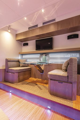 Una barca particolarmente luminosa e ricca di innovazioni stilistiche e strutturali, come nello stile del cantiere, ma anche personalizzabile secondo esigenze dell’armatore.