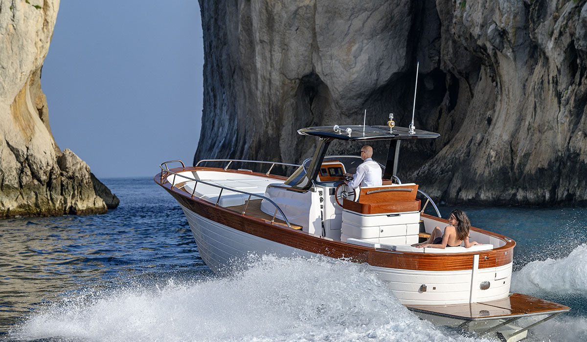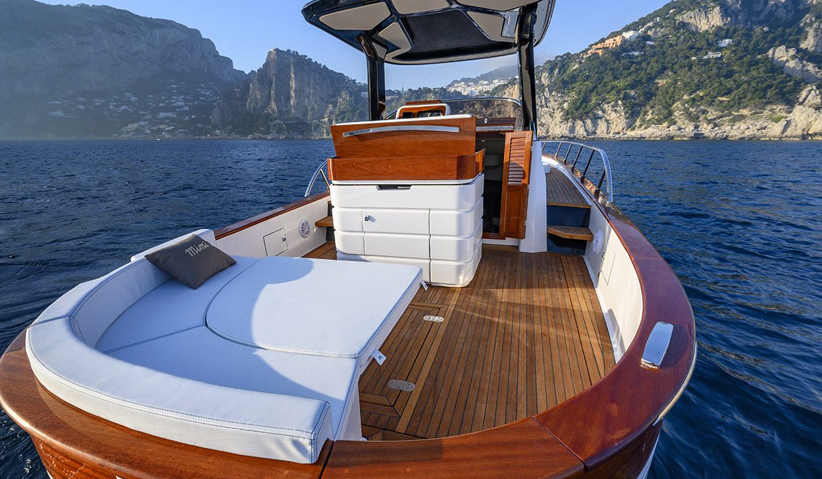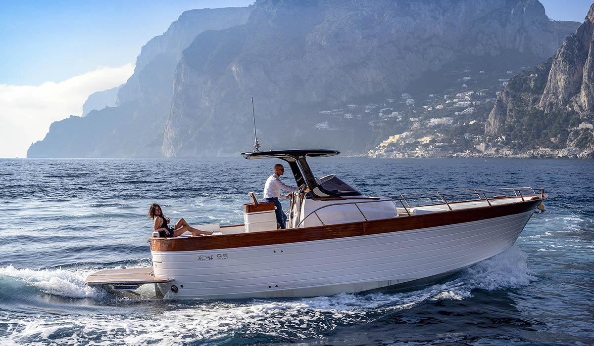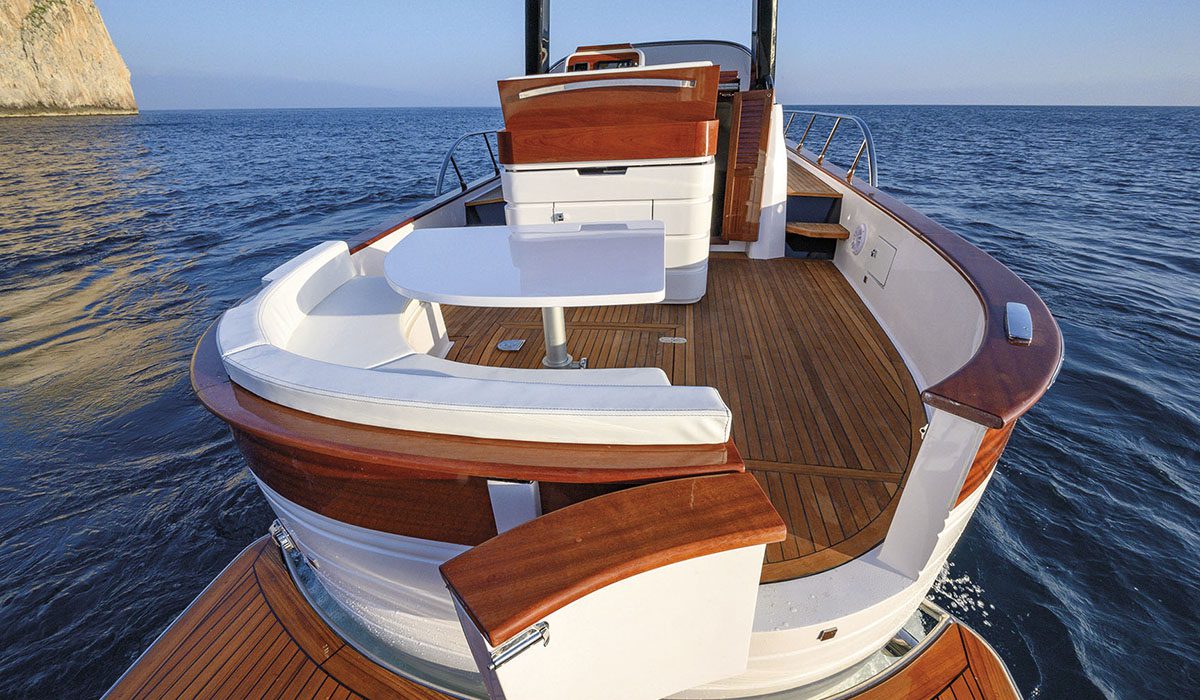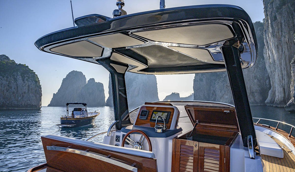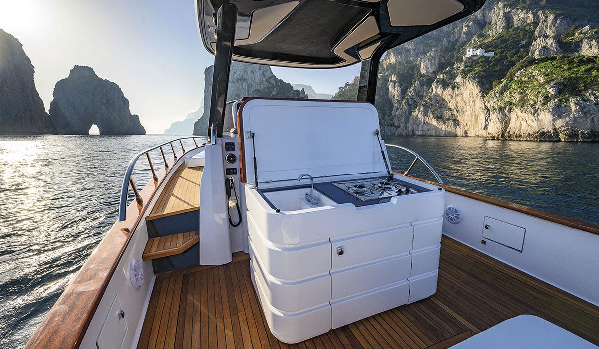 Dall’esperienza della versione Sport, di cui mantiene la carena, ecco la versione walkaround di un gozzo che evoca la tradizione campana aggiungendovi molti elementi di modernità.
