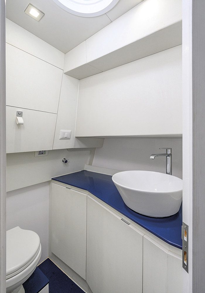 Toilette: ottima. In locale separato, è dotata di wc elettrico, lavandino e ripostigli.