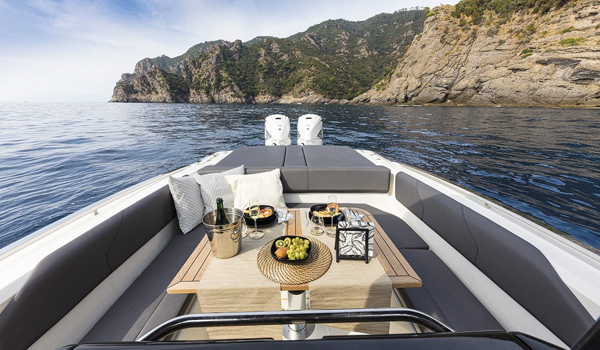 Come sempre accade, è stato il mare a pronunciare la parola definitiva e a ristabilire la verità dei fatti. L’alleanza tra l’ufficio tecnico del cantiere e Federico Fiorentino, designer che da oltre dieci anni firma le carene Lomac, si è manifestata in campo, anzi in acqua, attraverso i numeri e le sensazioni: 53 nodi di massima in condizioni difficili, con un metro e mezzo di onda che in uscita dal porto di Genova non ci avrebbe mai fatto scommettere sulla possibilità di affondare le manette per dare piena potenza ai due Yamaha da 425 HP.