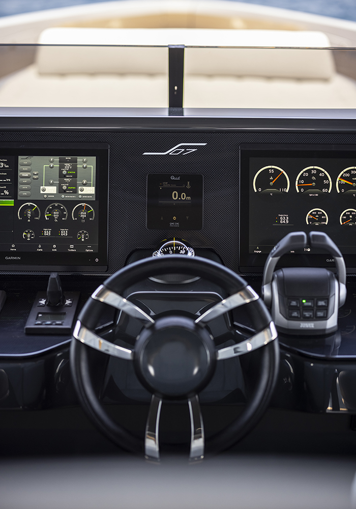 La motorizzazione è costituita dagli ultra affidabili Volvo Penta IPS 950 che spingono l’S07 fino ai 26 nodi, ma che tra i 20 e i 22 nodi consentono economie di esercizio invidiabili. L’insonorizzazione è elevata, rendendo gradevole la navigazione in ogni area della barca, anche all’interno.