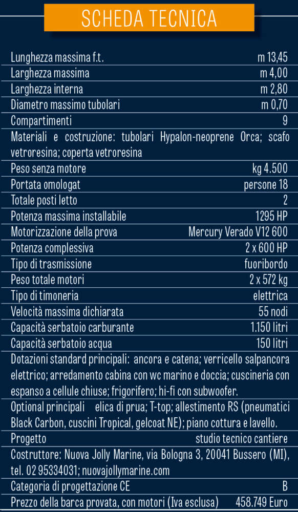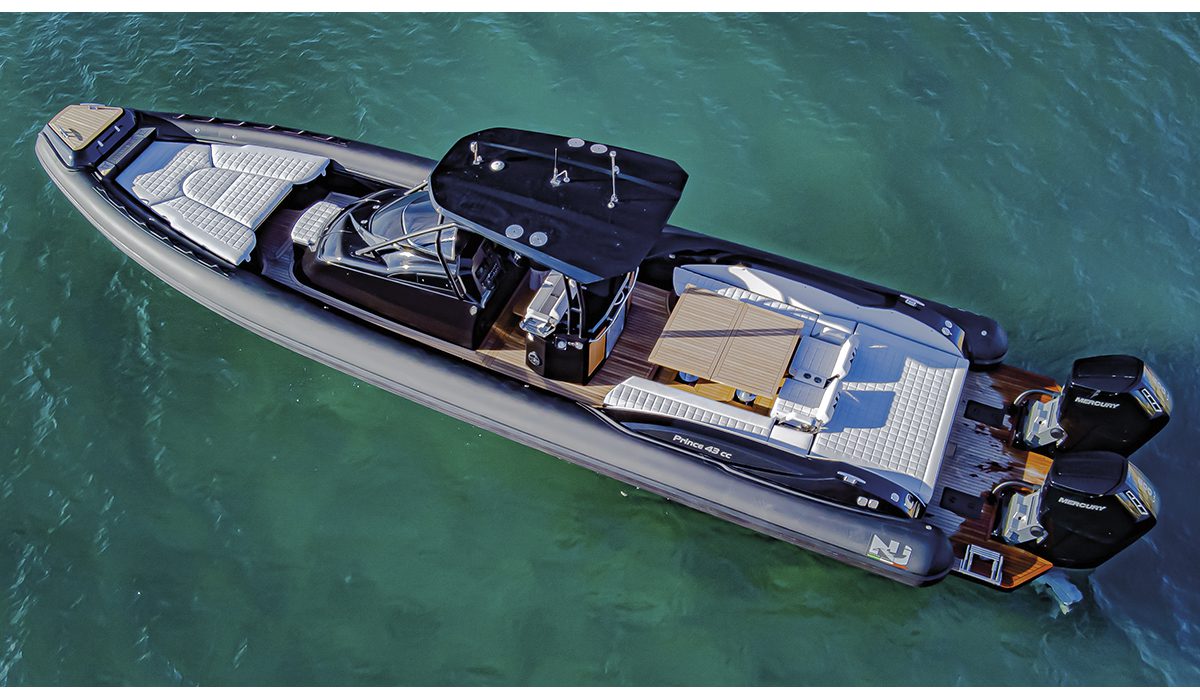 Quello del Prince 43 è un progetto che certamente non può essere considerato nuovo ma che, attraverso il continuo perfezionamento al quale Nuova Jolly sottopone i suoi modelli, nella sua ultima versione risulta eccezionalmente attuale. L’avverbio non è causale né deve sembrare eccessivo, poiché, oltre alle tante soluzioni che pongono una grande distanza tra l’unità di questa prova e la sua antesignana, c’è la novità di una motorizzazione che non esitiamo a definire rivoluzionaria, essendo formata da una coppia di Mercury V12 Verado da 600 HP. Insomma, il fuoribordo di cui tutti – giustamente – parlano.