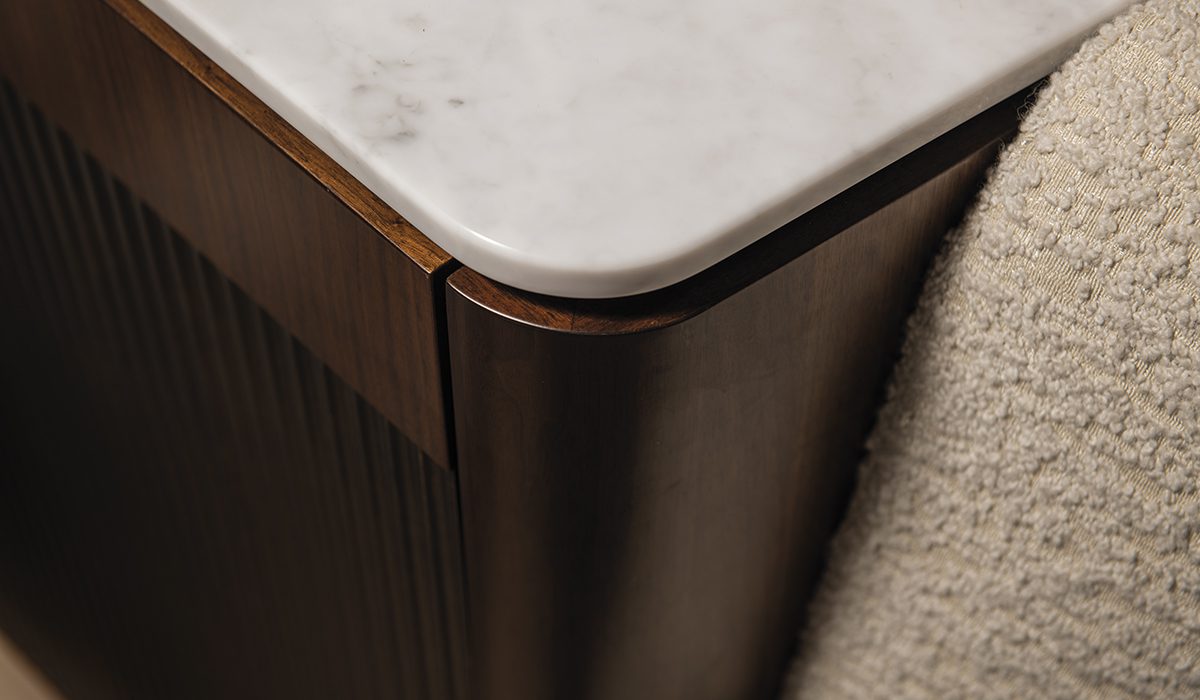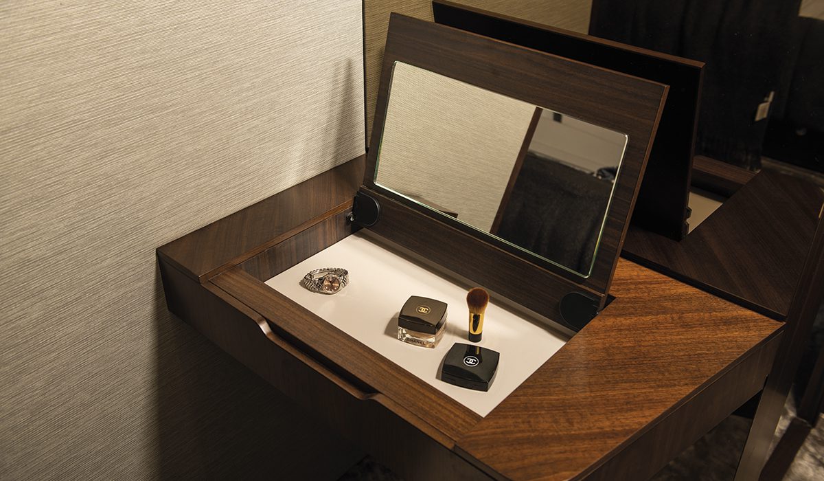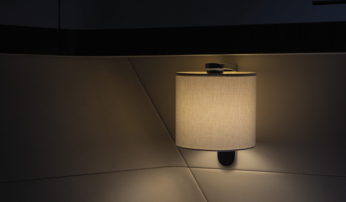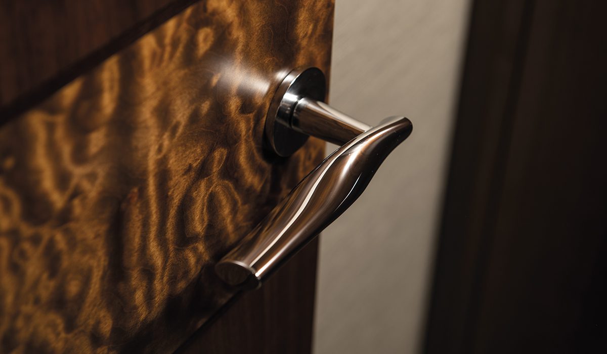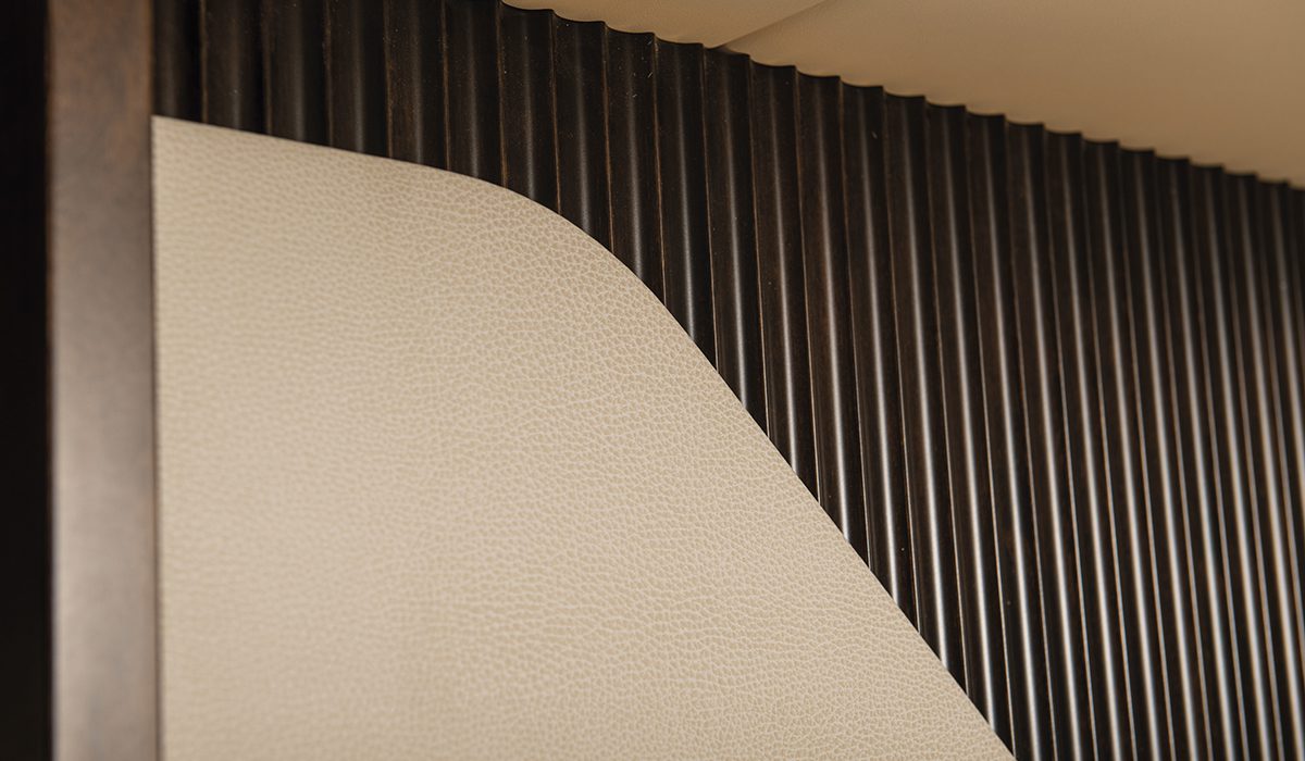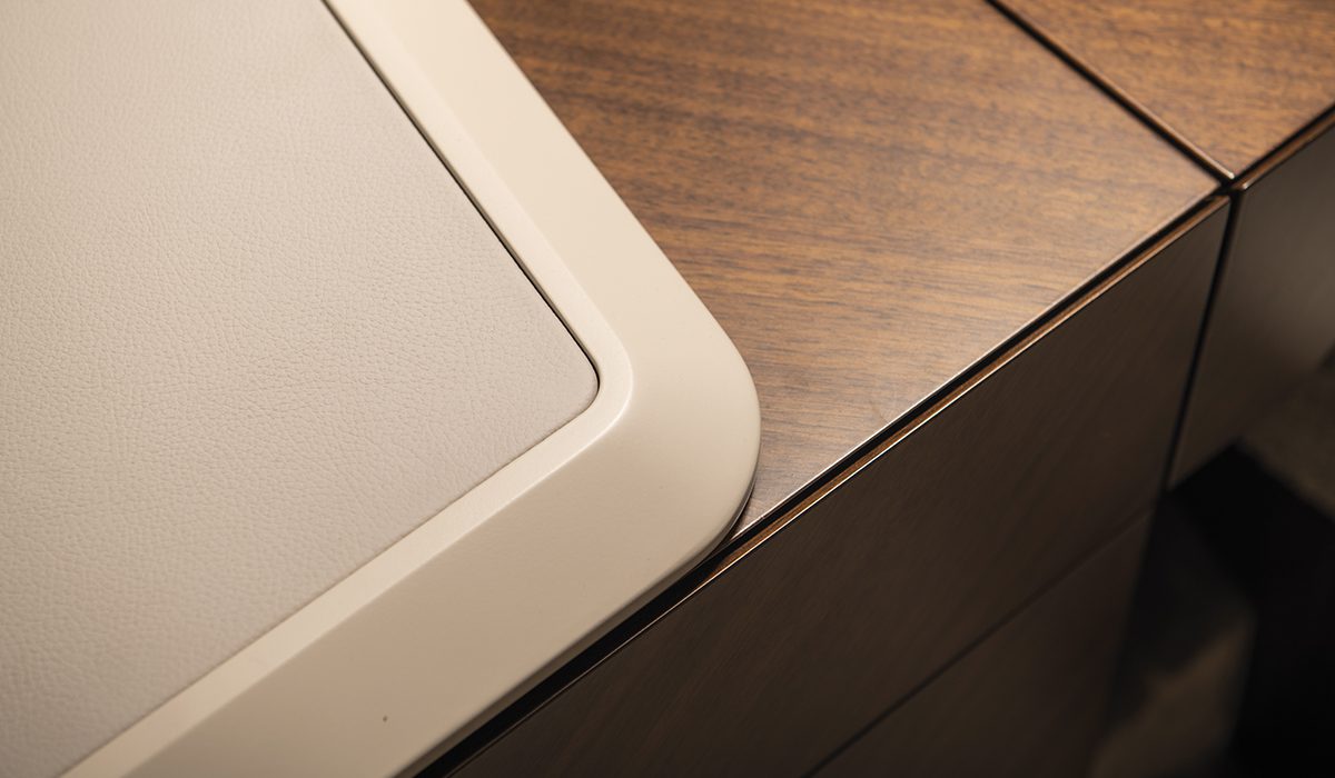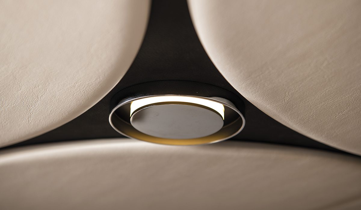 Due divani contrapposti di generose dimensioni e un mobile bar alle spalle della plancia di guida, servita da due poltroncine anatomiche, completano l’arredamento del living, in cui si apprezzano la qualità dei materiali e delle rifiniture.