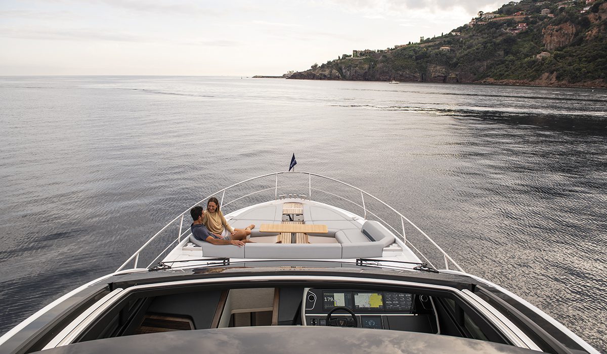 Da notare il divanetto a scomparsa che, ricavato a estrema poppa sulla stampata che chiude il garage, offre un insolito e invitante punto di relax anche durante la navigazione. Se però si desidera maggior privacy, l’area lounge di prua è in grado di accomodare tutti gli ospiti per un bagno di sole o per un rilassante aperitivo.