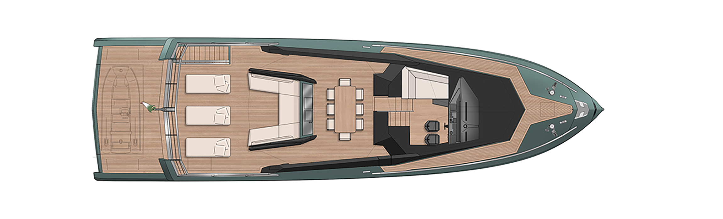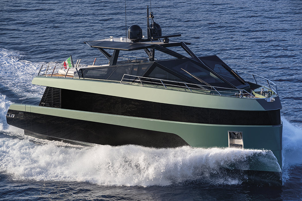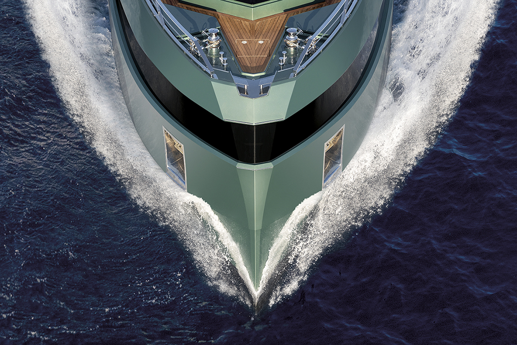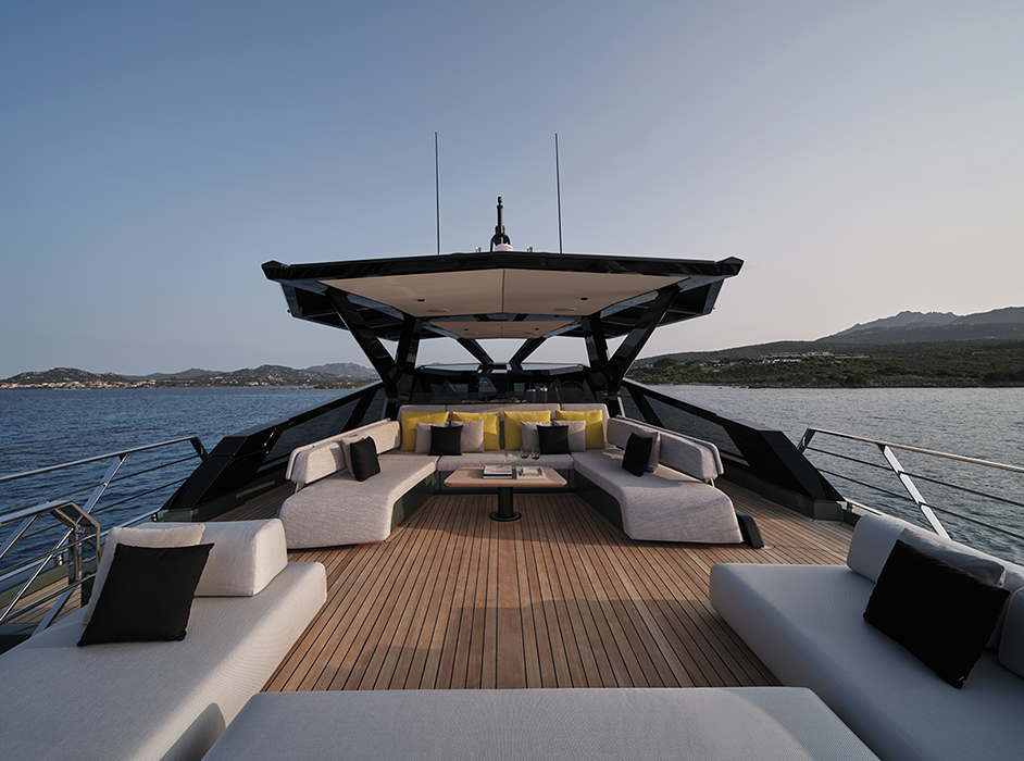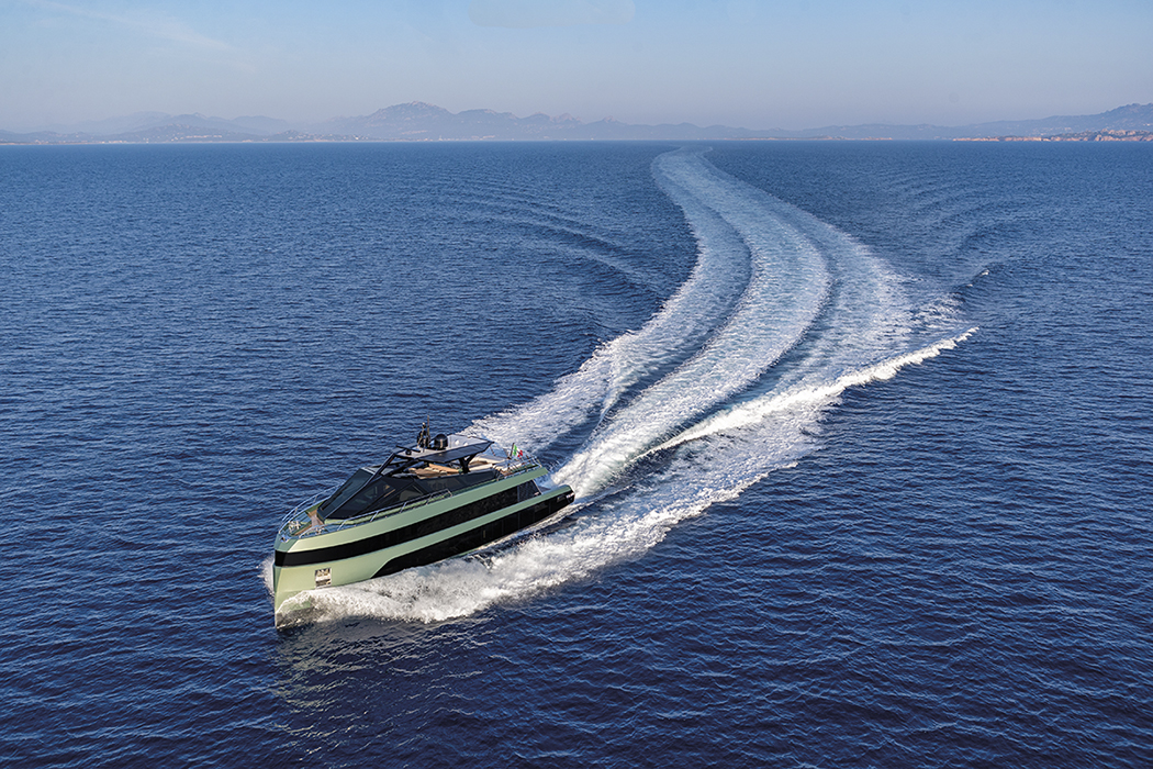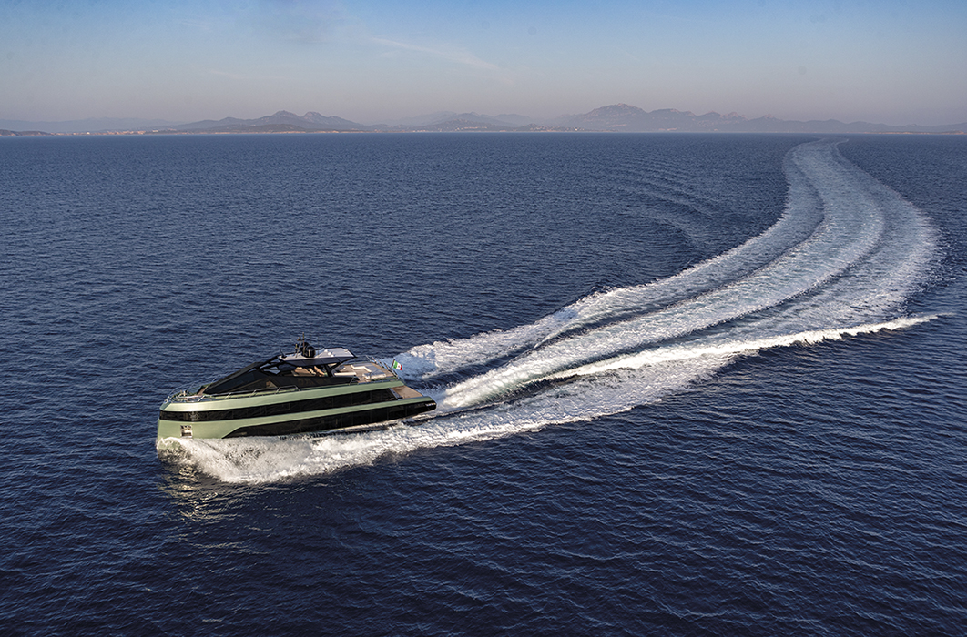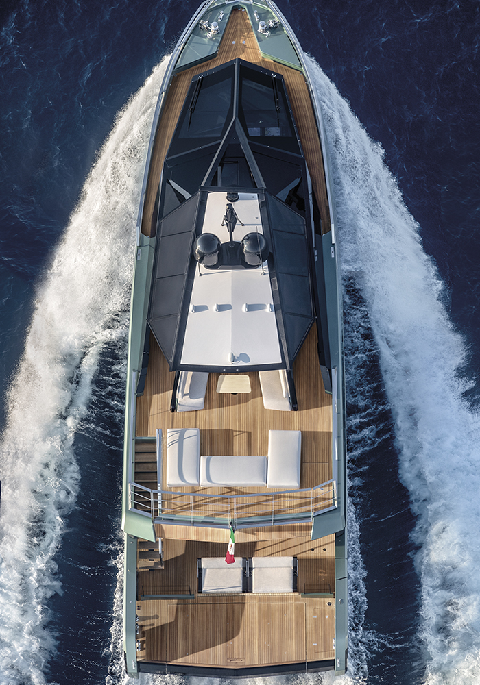 Una continuità stilistica possibile proprio grazie al fatto che il concept e le linee esterne sono state curate dallo stesso Bassani, che del marchio è il chief designer, al quale si sono affiancati il team di Wally-Ferretti Group Engineering per linee d’acqua e coperta e lo Studio Vallicelli Design che ha firmato gli interni.