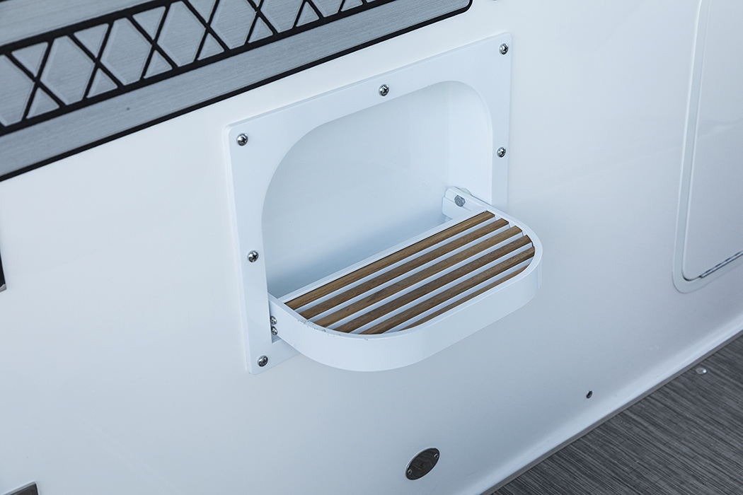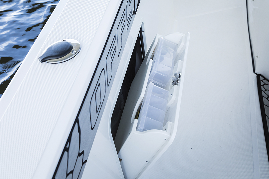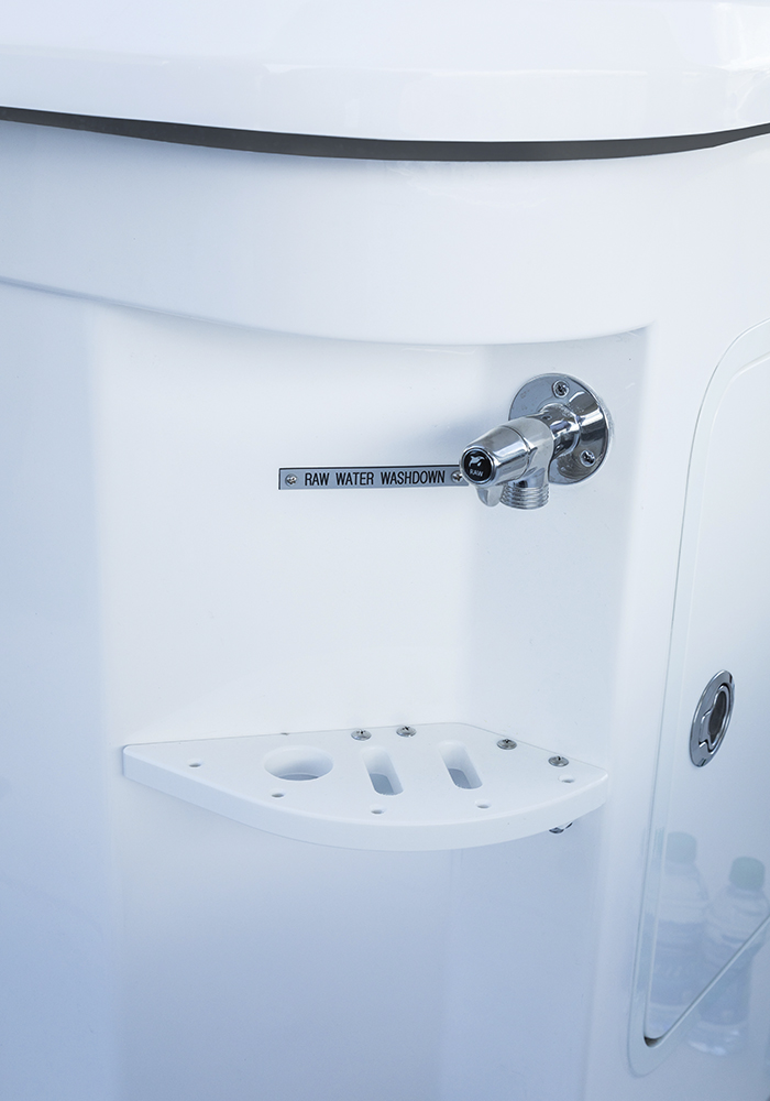 Un fisherman puro, dove tutto parla della passione per la pesca in stile nordamericano: pozzetto attrezzato con vasche per esche e pescato, libertà di movimento, motorizzazione potente per spostarsi da un hot spot all’altro e fare rientro poi alla base.
