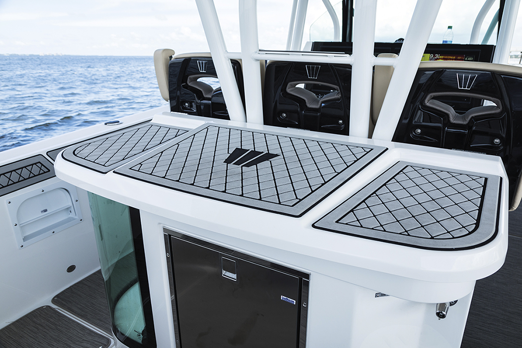 Con un accenno a quella versatilità che, seppure non tale da farlo inserire nella fascia dei commuter, lo avvicina a una visione più europea, tipica del gruppo Beneteau di cui Wellcraft fa parte dal 2014.